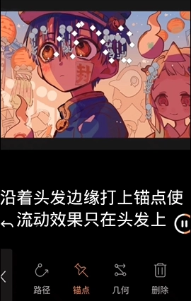 接下来要用到锚点,锚点的作用是限定流动的范围或者降低流动效果,顺着头发的边缘添加锚点,这样流动效果就只会在头发区域呈现。