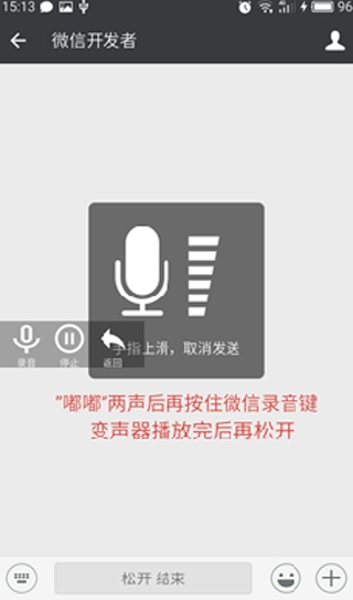 5、听到嘟嘟两声提示音后,再按住微信的录音键开始正常的语音录制