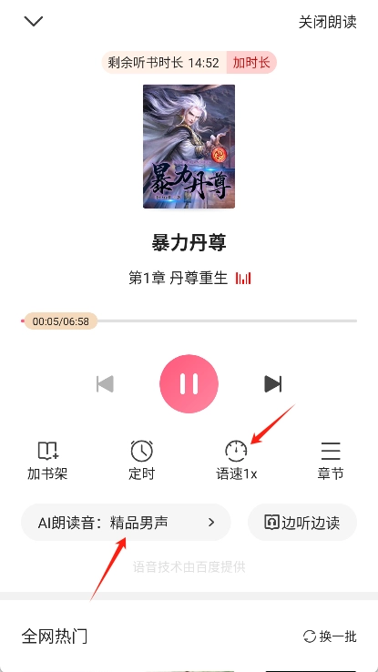 4、设置调整:在听书模式中,能够对朗读速度、语音音调等相关设置进行调整。