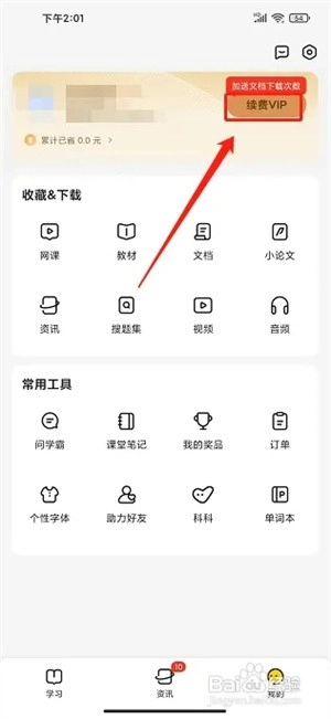 2、点击续费VIP