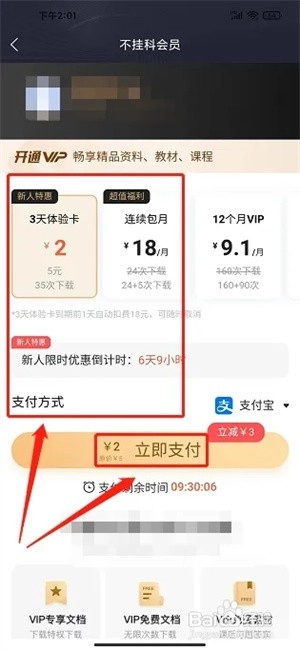 进入不挂科会员界面后,挑选合适的会员套餐与支付方式,然后点击【立即支付】按钮即可。