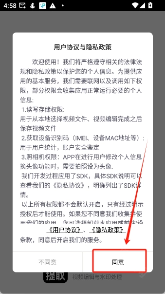 1、打开魔趣网的视频提取大师,点击“同意”按钮进入软件