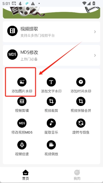 视频编辑功能包含视频裁剪、时长剪辑、倒放以及添加水印等操作支持。