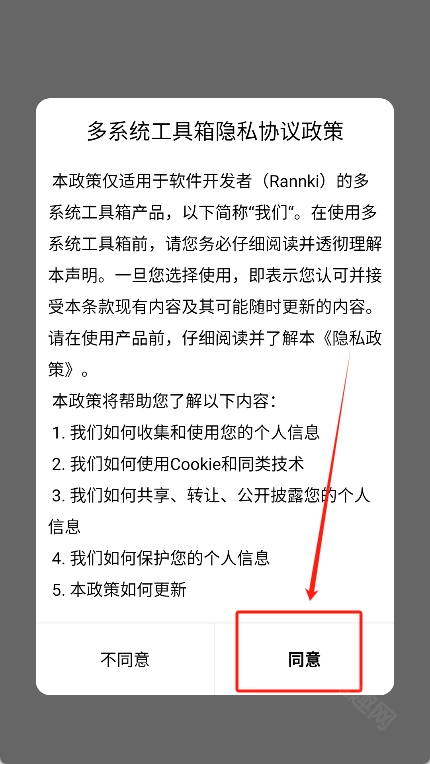 1、首先在魔趣网下载并安装多系统工具箱,接着选择“同意”进入软件。