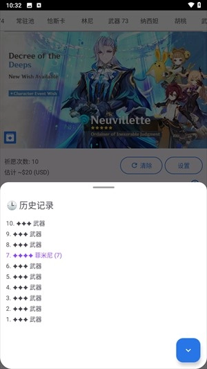 这个原神在线抽卡模拟器能模拟各类卡池的十连抽,像常规池、部分角色的UP池,以及神铸赋形的武器UP池,足以让大家抽得尽兴。