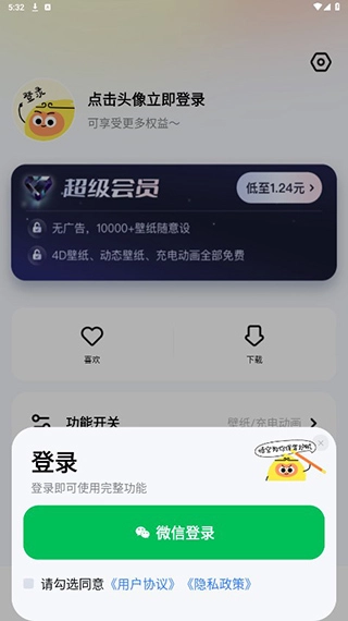 用户在本站打开软件后,可点击下方的“我的”,接着点击上方的“登录”按钮,选择微信登录方式完成登录操作即可。