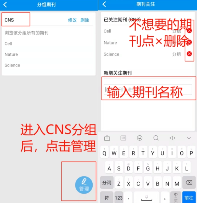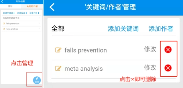 第一步:进入关键词/作者界面;