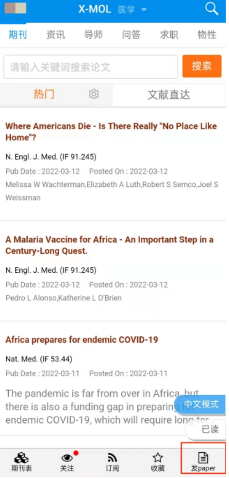 进入该学科领域,可阅读最新的顶级期刊文献(当前显示为中文界面,是由于此前选择了中文模式;若希望查看英文原文,切换至英文模式即可)。