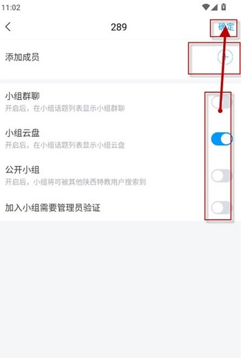 4、挑选你要添加的小组成员,完成简单的小组设置后,点击确定就能建立小组。