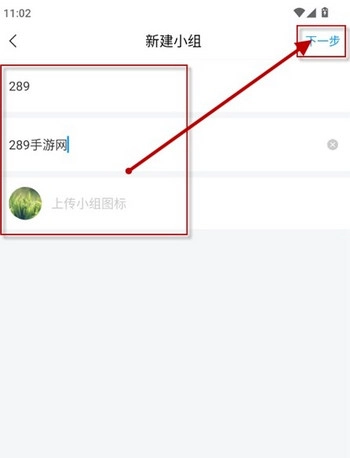 3、填写小组名称与简介,上传小组图标,随后点击下一步;