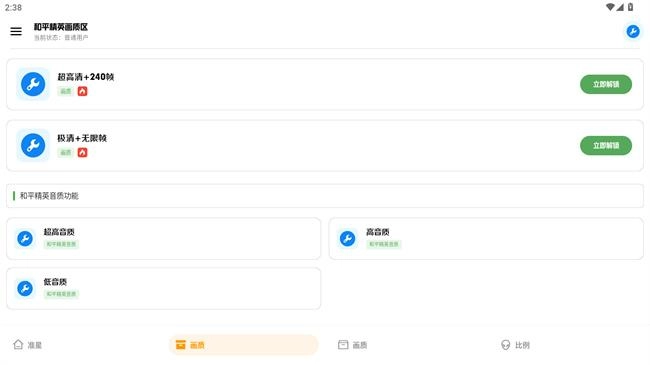 1、先在软件首页选择画质进入