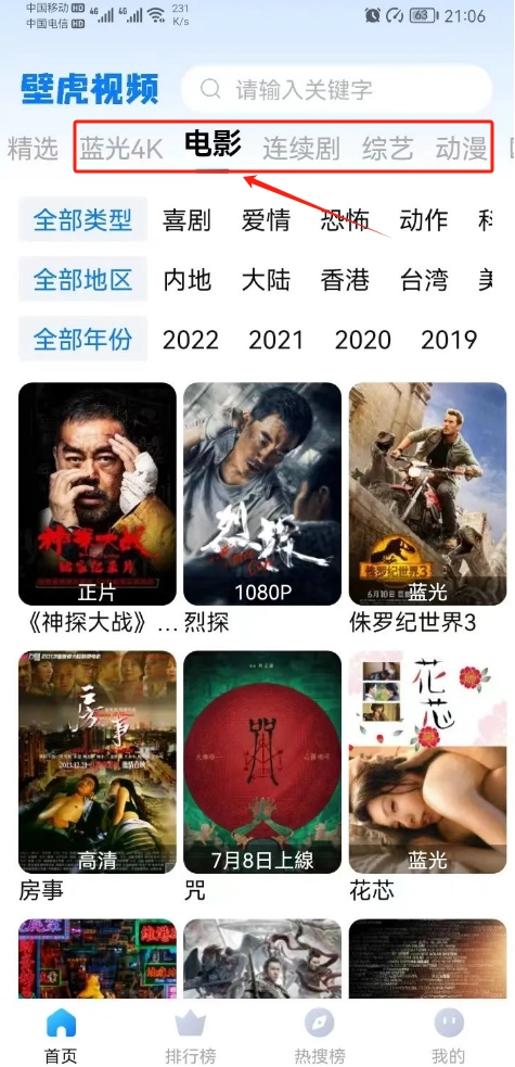2.如果栏目里找不到你想看的,可以直接搜索影片