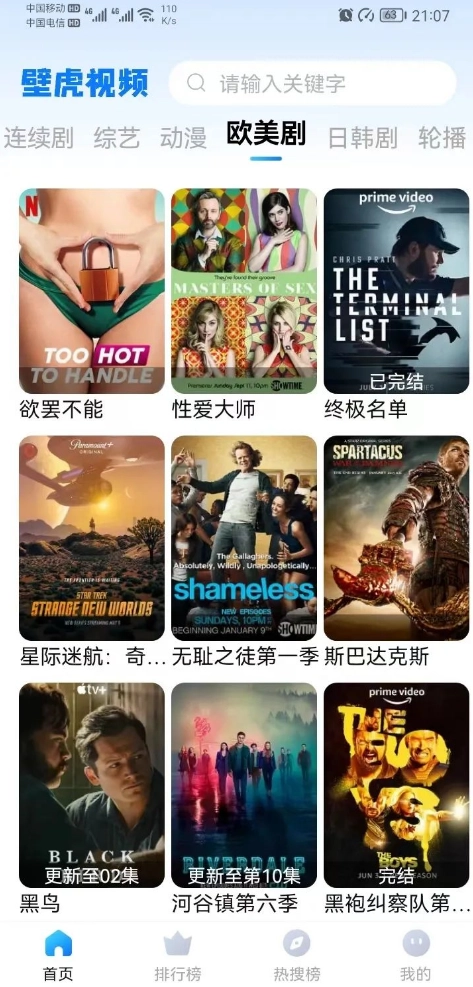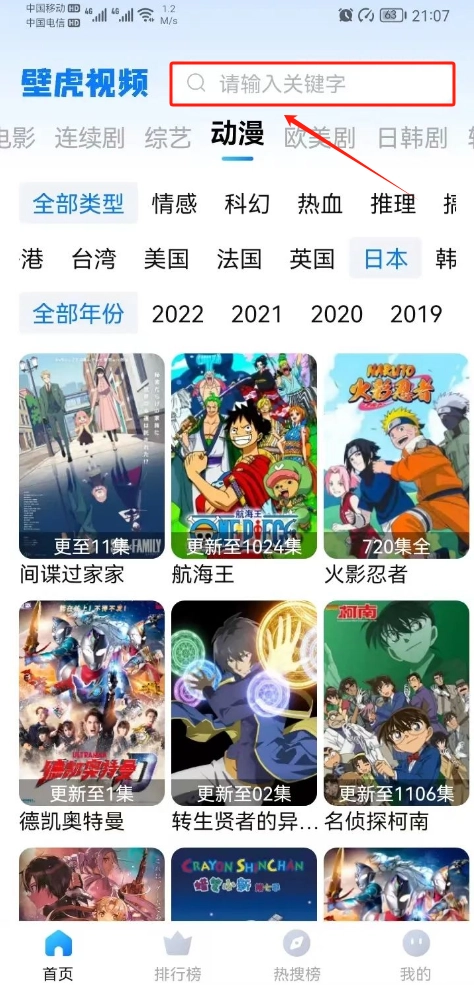 打开壁虎视频后,你可以观看电影、美剧、综艺以及日漫等内容。