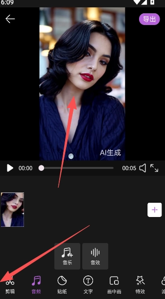 1、点击软件的音频板块,即可启动对需要添加配音的视频的创作流程。