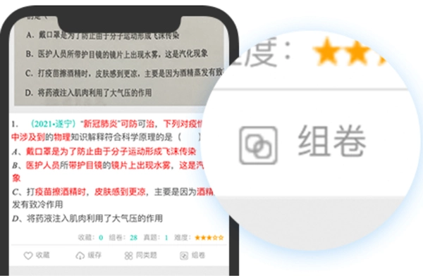 识别完成后,你可以挑选与之匹配的试题,点击“组卷”按钮将其添加到试题篮中。