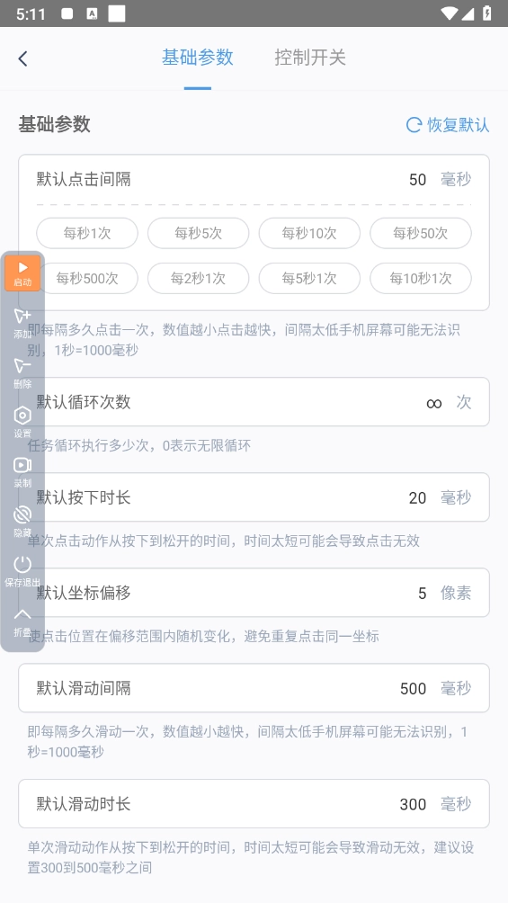 3、闪指连点器可模拟单击、长按、滑动等各类点击动作,具备全面的手势操作模拟功能。