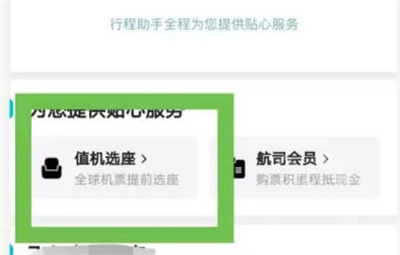 3、在“为您提供贴心服务”的下方找到“值机选座”按钮并点击,即可进入选座界面。