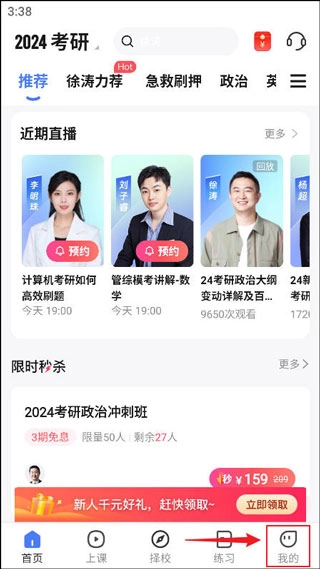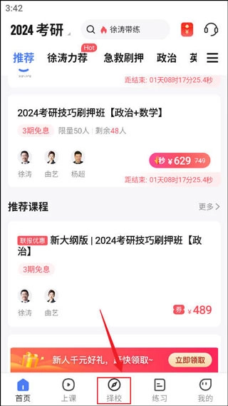 研途考研作为研途教育旗下的在线辅导平台,是一款专门为考研学子打造的高效复习工具。平台涵盖院校选择指导、考研政治、数学、英语及专业课等多方面内容,不仅有由名师主讲的在线直播课程,还提供了丰富的精品录播课程,能够全方位满足不同备考群体的需求,助力考生高效备考。