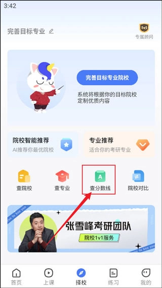 2、如图所示,点击"查分数线"。