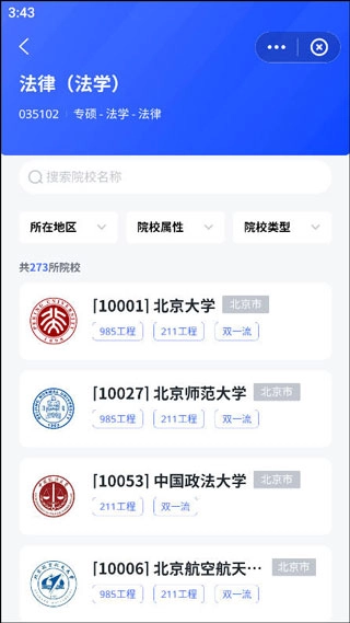 4、随后挑选想要报考的院校,能够一键输入名称来进行查询。