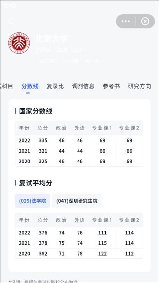 5、进入后切换到分数线页面,按照图示操作,即可查看该院校的分数线。