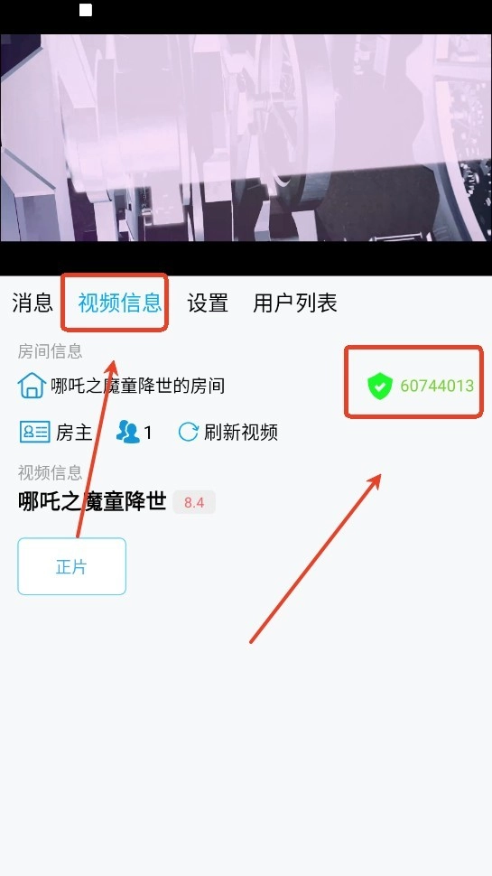 4、在视频信息内复制房间号给你的好友。