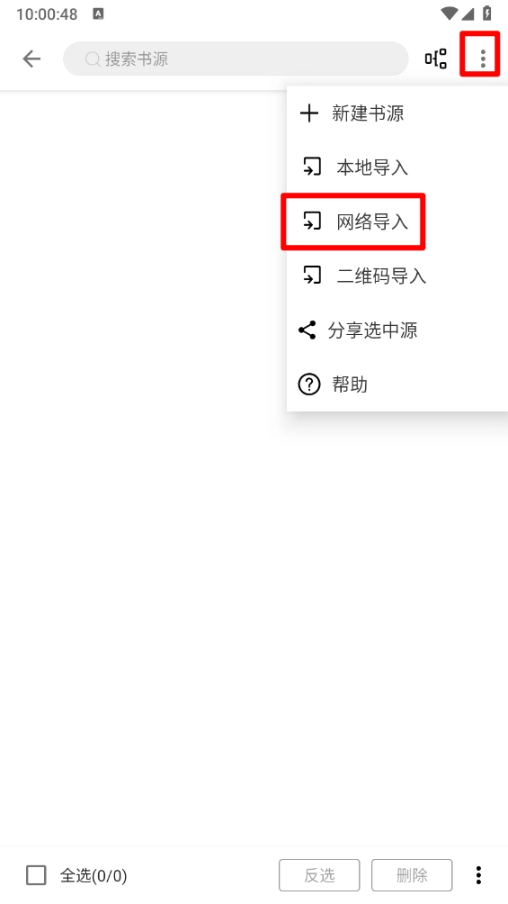 4、在新打开的页面中,点击右上角的三个点图标,随后选择“网络导入”选项。