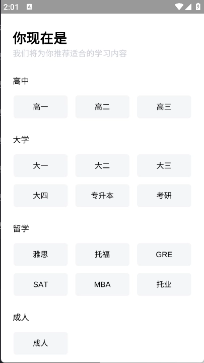 2、接着打开应用,进入年级列表页面,从中选择我们要学习的年级。