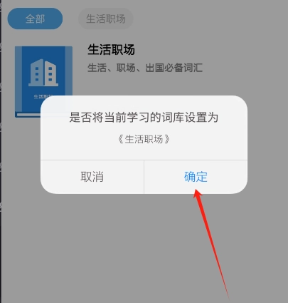 4、在弹出的窗口里点击“确定”按钮,就能完成学习词库的设置了。