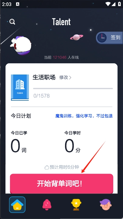 5、回到软件的首页,点击“开始背单词吧”按钮,即可开始进行单词学习。