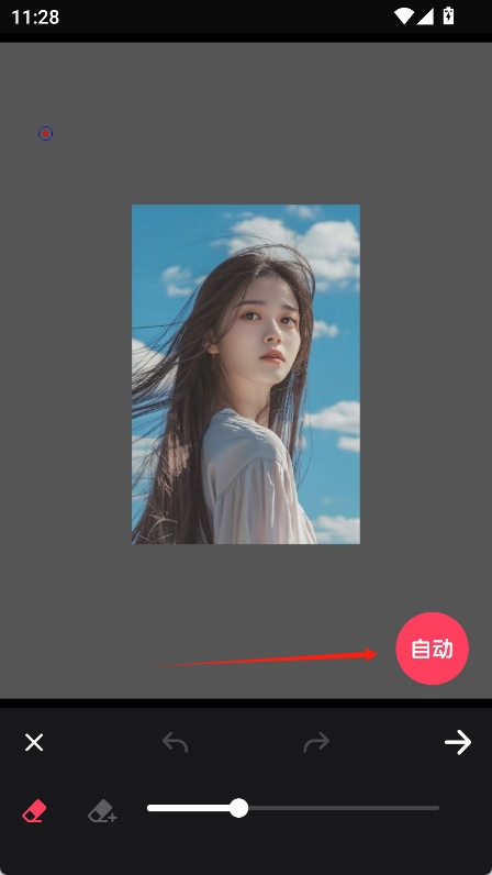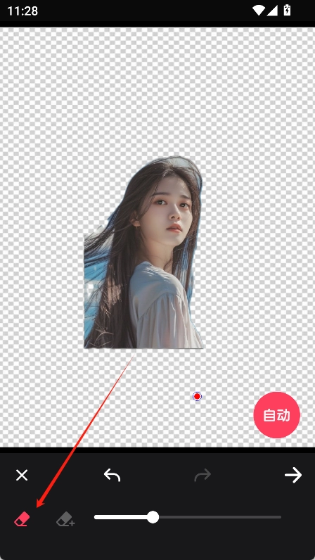 选择照片后进入抠图界面,点击“自动”按钮,系统便会自动识别并抠出照片里的主体。