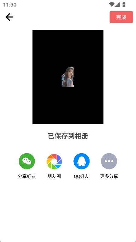 编辑完毕后点击右上角的保存按钮,照片就会无水印且免费地保存到手机相册里;也能够直接分享到朋友圈、微博这类社交媒体平台。