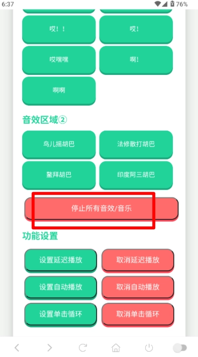 3、接着点击“停止所有音效/音乐”,若要重新播放则需再次开启。