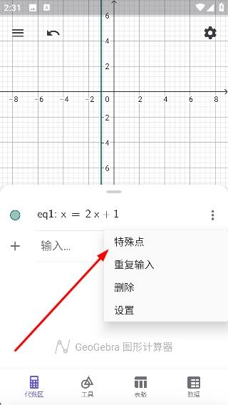 3、点击方程旁的操作菜单,选择【特殊点】功能。