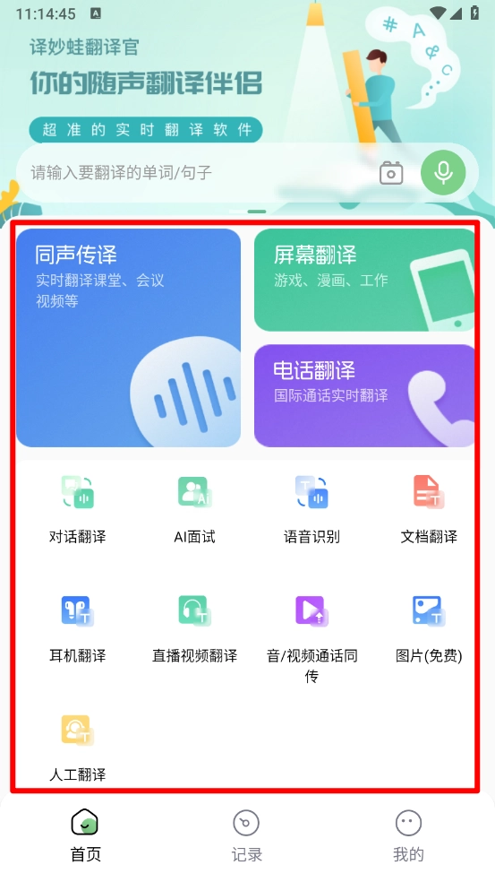 2、进入首页,涵盖多个翻译模式。