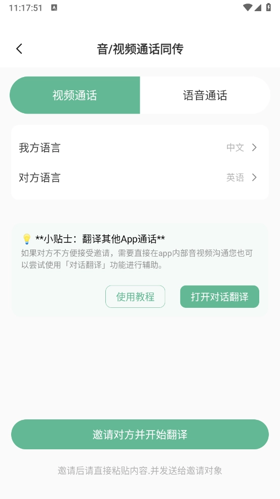 5、最后还可支持音频、视频通话同传。