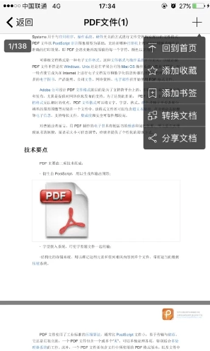 - 文件阅读功能方面,支持页面跳转、文本查找、添加书签以及查看目录等操作。