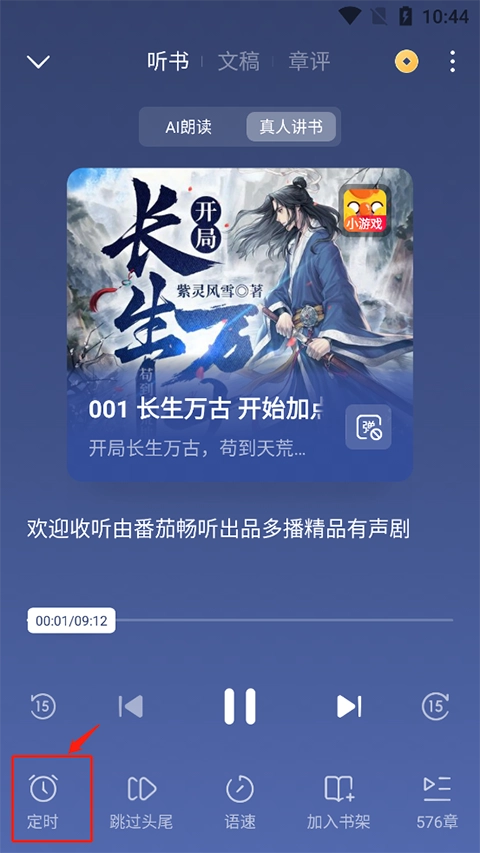 1、用户在听书页面选择“定时”按钮。