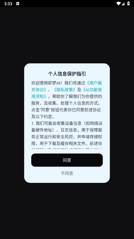 1、先在安装软件,查看相关用户的协议和隐私政策。