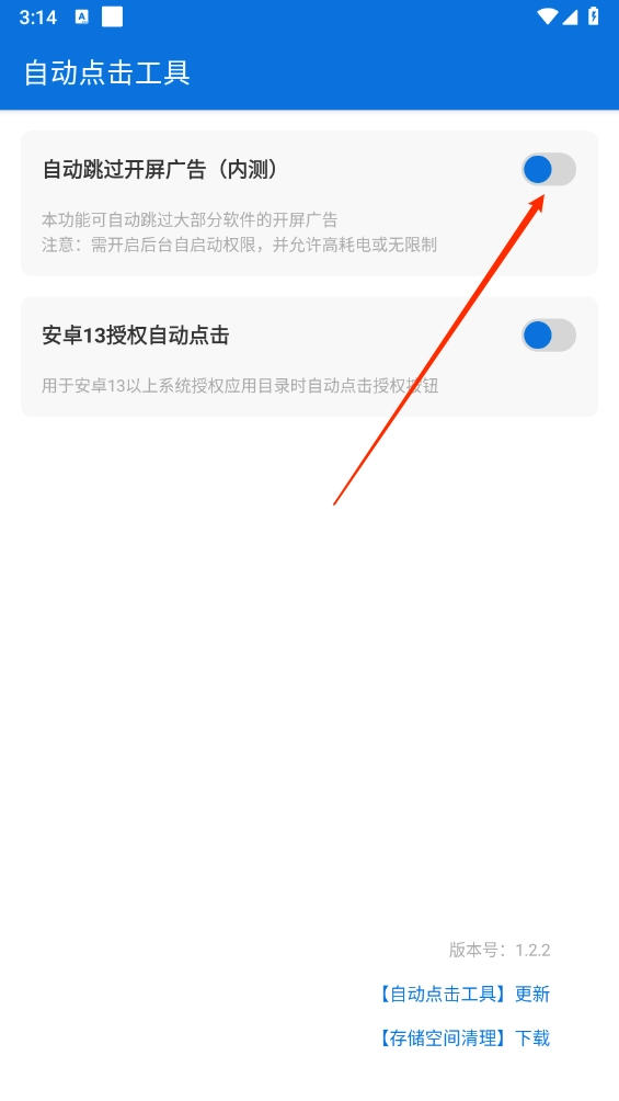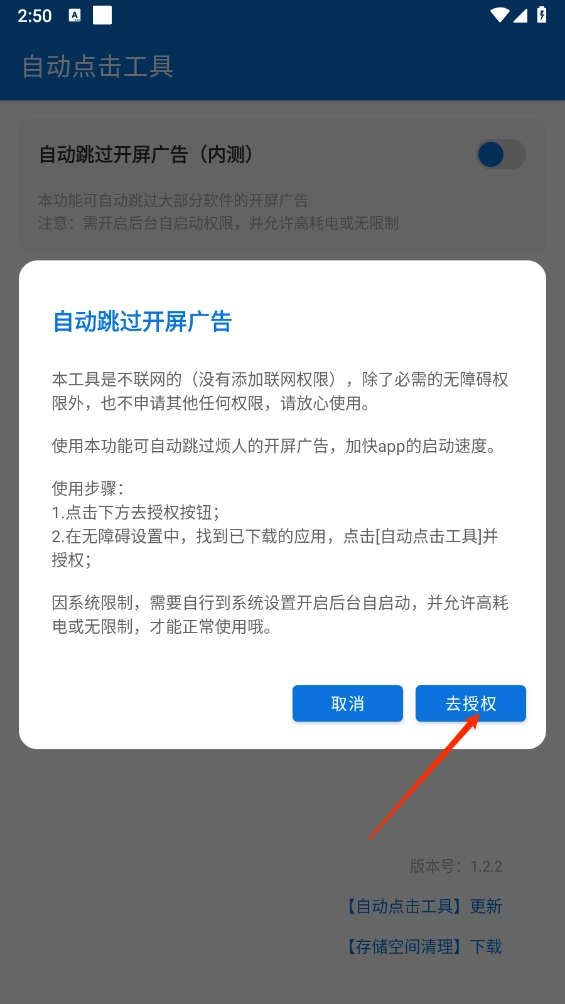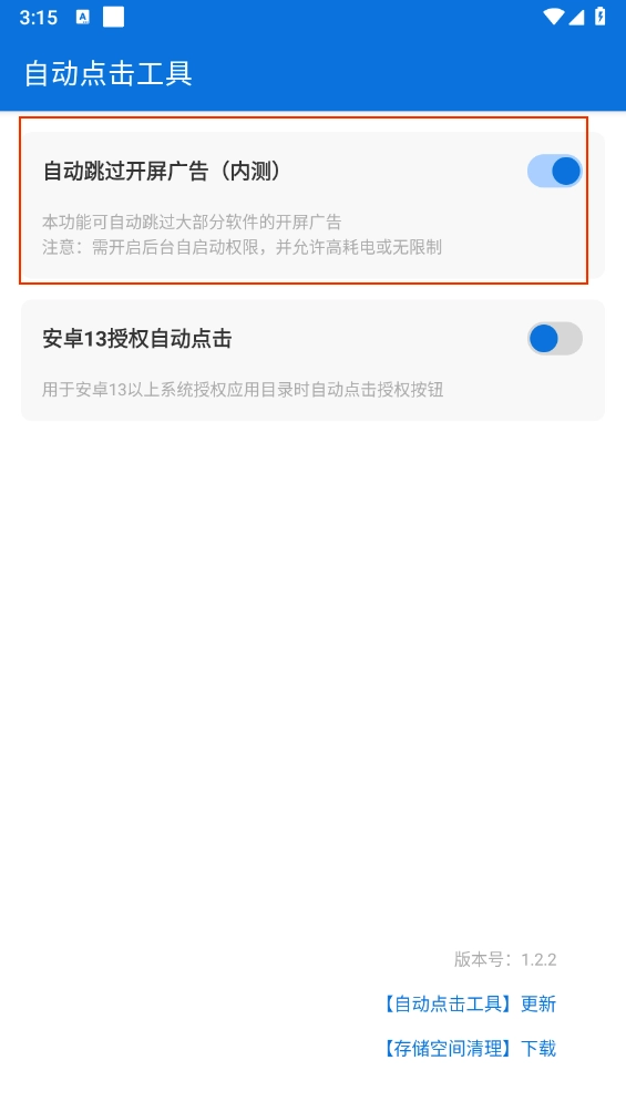这款自动点击工具和李跳跳类似,不用联网就能用。它会根据手机系统自动跳过广告,只要开启无障碍服务,广告弹出来的时候就能立刻触发关闭操作,能帮用户减少误点广告的风险,而且还支持安卓13的自动点击授权呢!