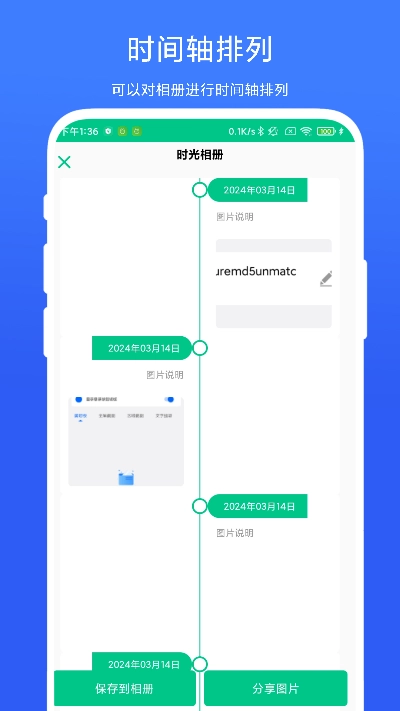 软件多种时间轴样式可供挑选,满足不同用户的个性化偏好。用户可自主添加图片、文字、时间等元素,打造专属的时间轴记录。软件配备一键保存功能,能将完成的时间轴导出为长图,方便后续查看与分享。时间轴相机还拥有社交分享功能,可轻松把创作分享到各大社交平台,与朋友们一同分享生活里的美好瞬间。整体操作简便直观,适合各年龄段用户使用。