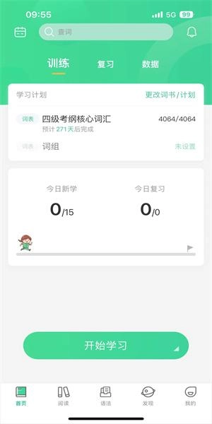 4、点击“开始学习”查看单词,依据对单词的熟悉程度选择对应的按钮,完成当日学习任务后进行打卡操作。