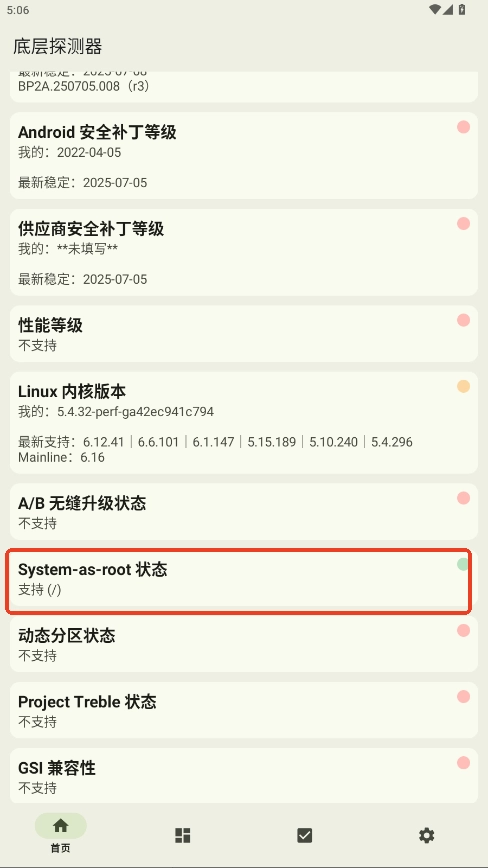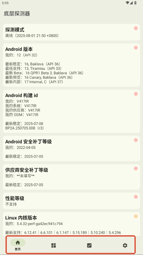 1.进入首页后,各类信息清晰呈现,CPU架构、内核版本、安卓版本、安全补丁等级等关键系统信息都能直观查看。