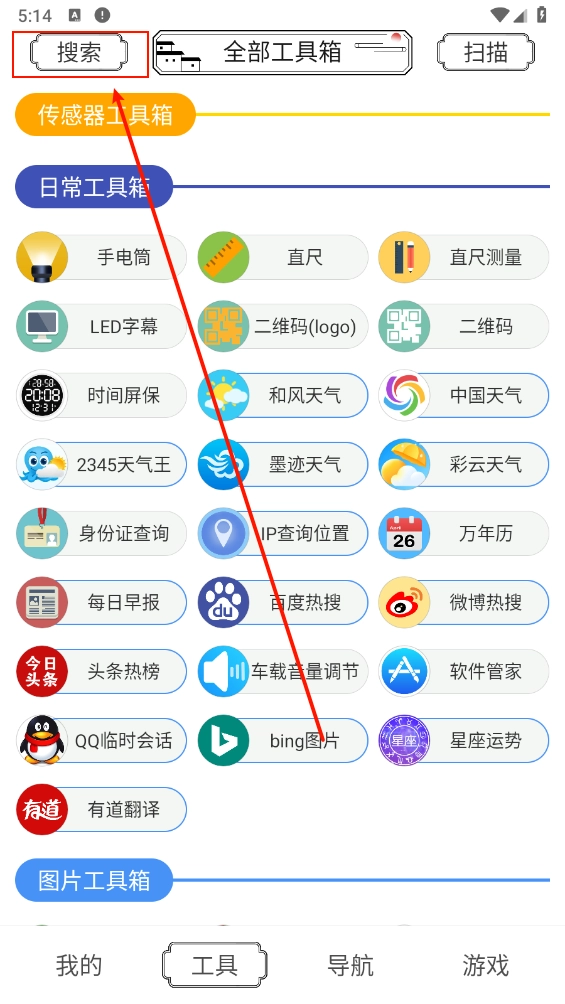 3、也能够一键点击左上方的搜索工具来查找自己需要的工具。