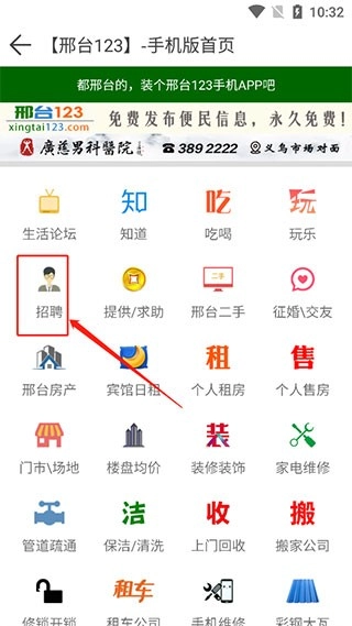 5、然后选择信息类型,在这里可以点击求职或者招聘
