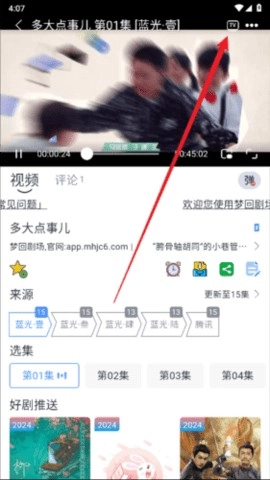1、进入视频后点击右上角TV