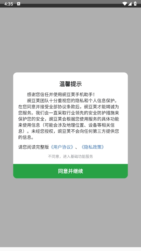 1、安装豌豆荚之后,查看相关的政策与协议。