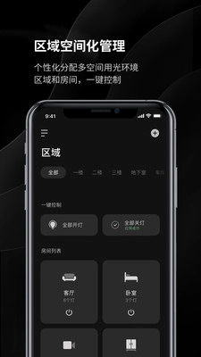 2、可个性化分配多个空间的用光管理,且各区域房间都能实现一键控制