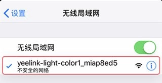 5、按照屏幕提示在无线网络列表里找到对应的Wi-Fi网络并选中,之后回到Yeelight界面,耐心等待连接成功就可以了