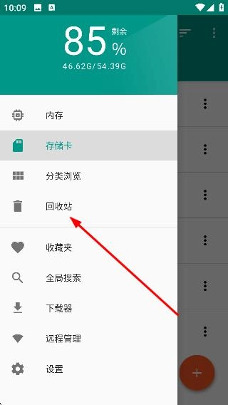 2、在功能列表中选择【回收站】,进入回收站界面。
